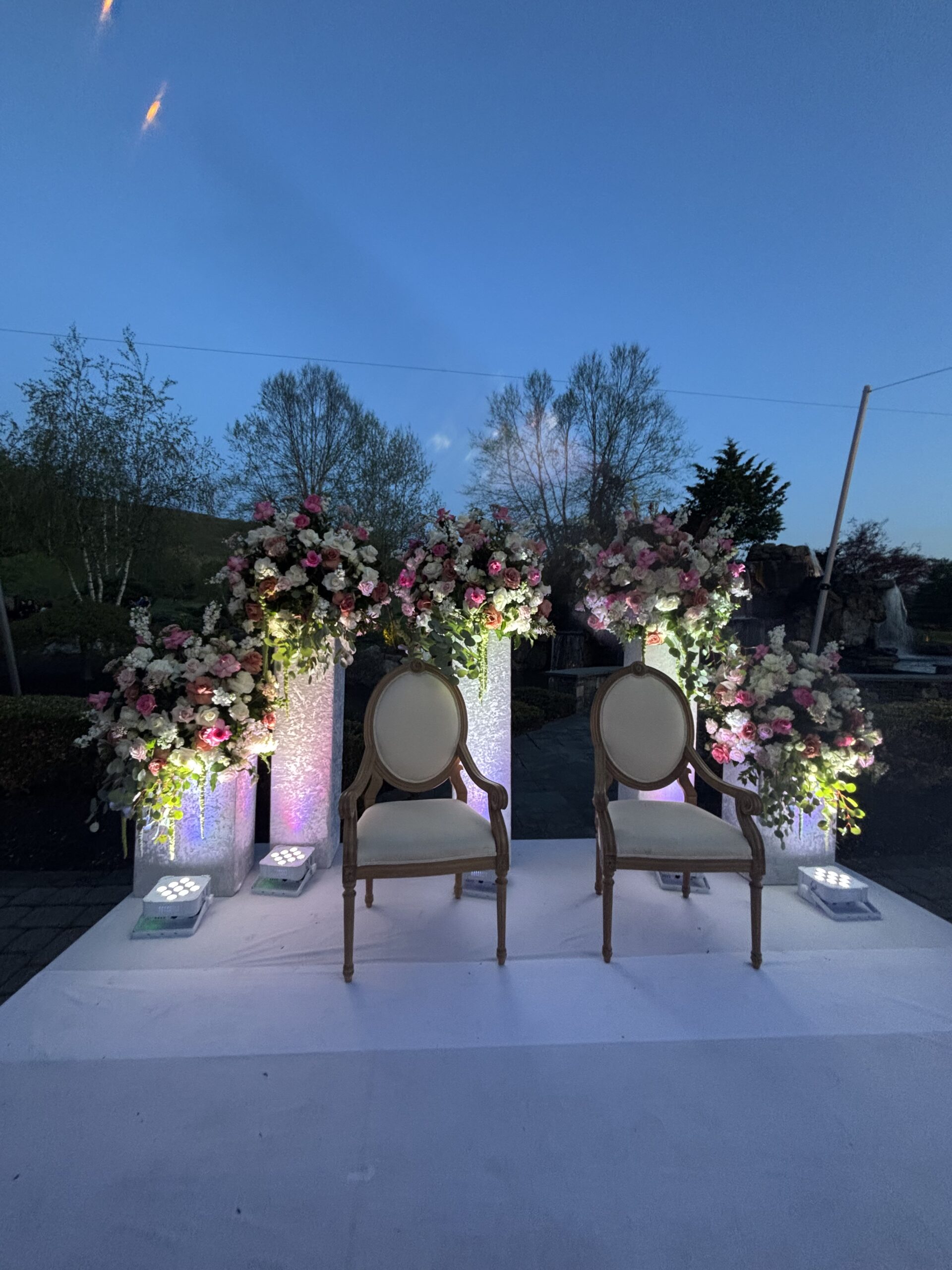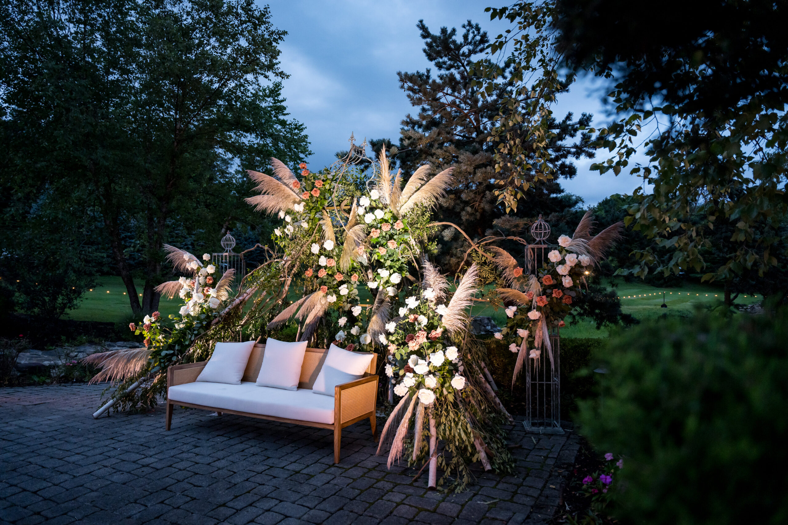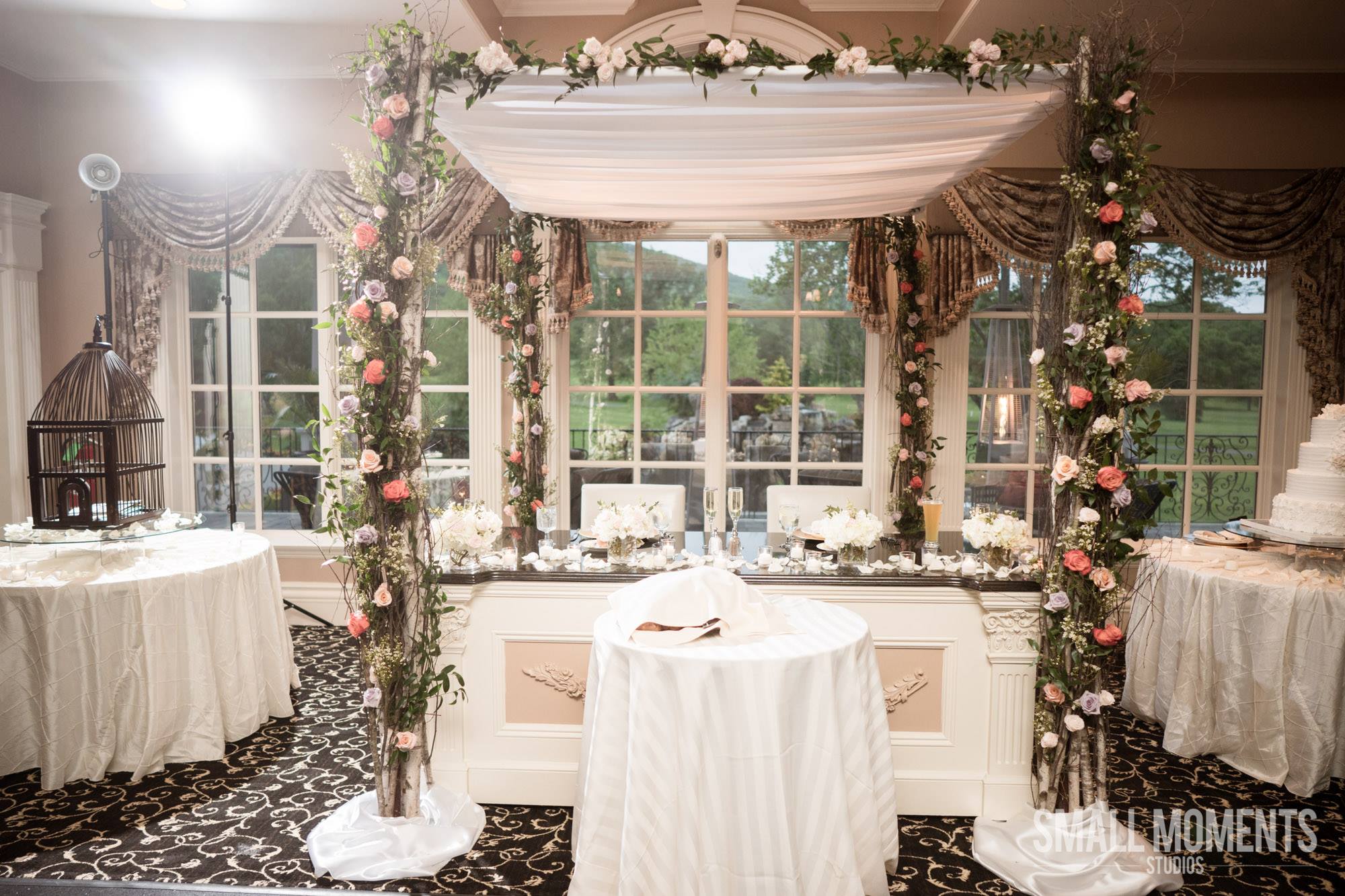 Kallah hand flowers and backdrop Chupa Flowers & Table centerpiece: Starting at $2,000