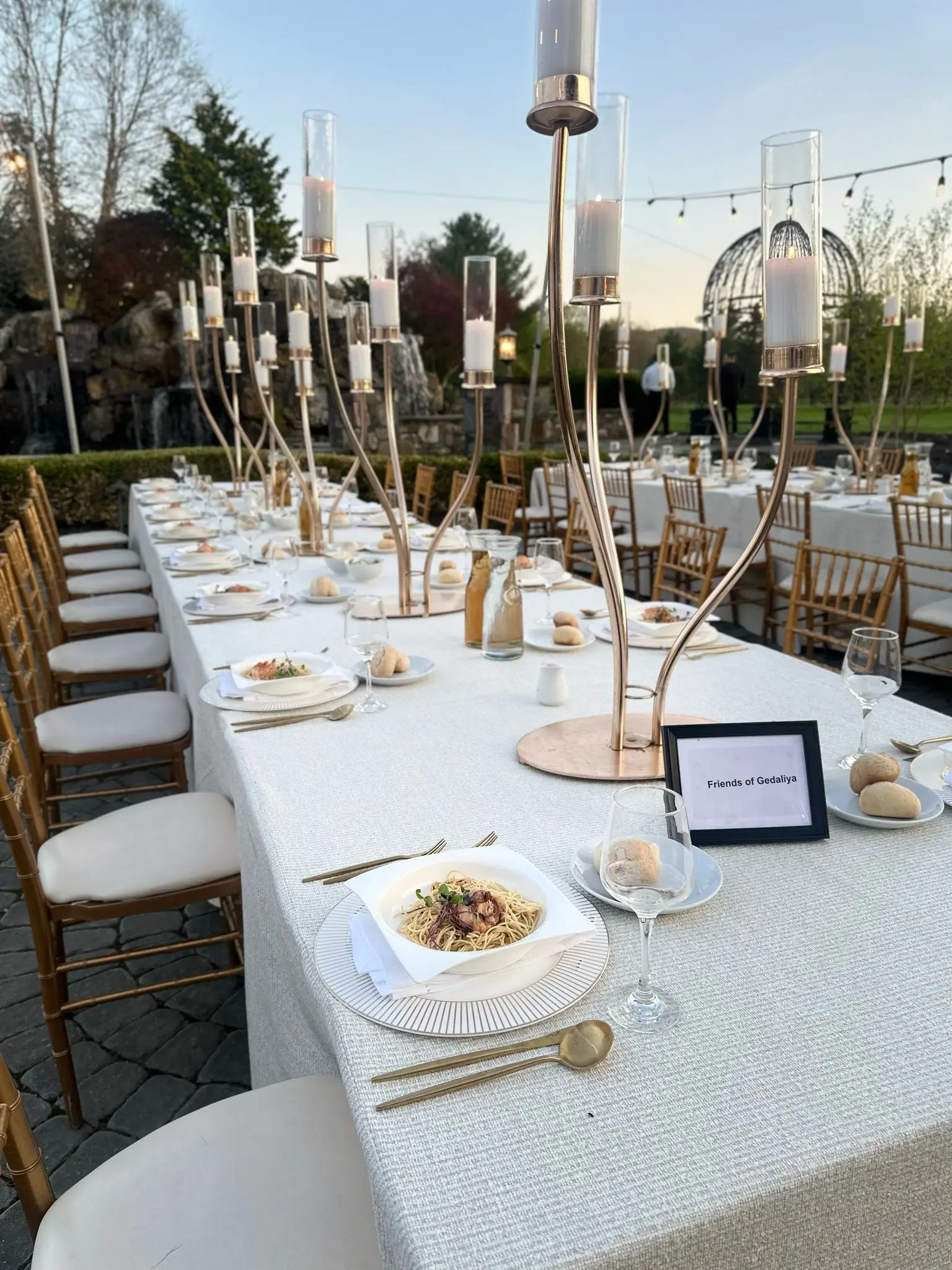 Hashgucha, Kitchen Staff, Waiters, Events Manager, Upgraded Floor-Length Tablecloths, Chargers & Two-Color Glassware, Bathroom attendant