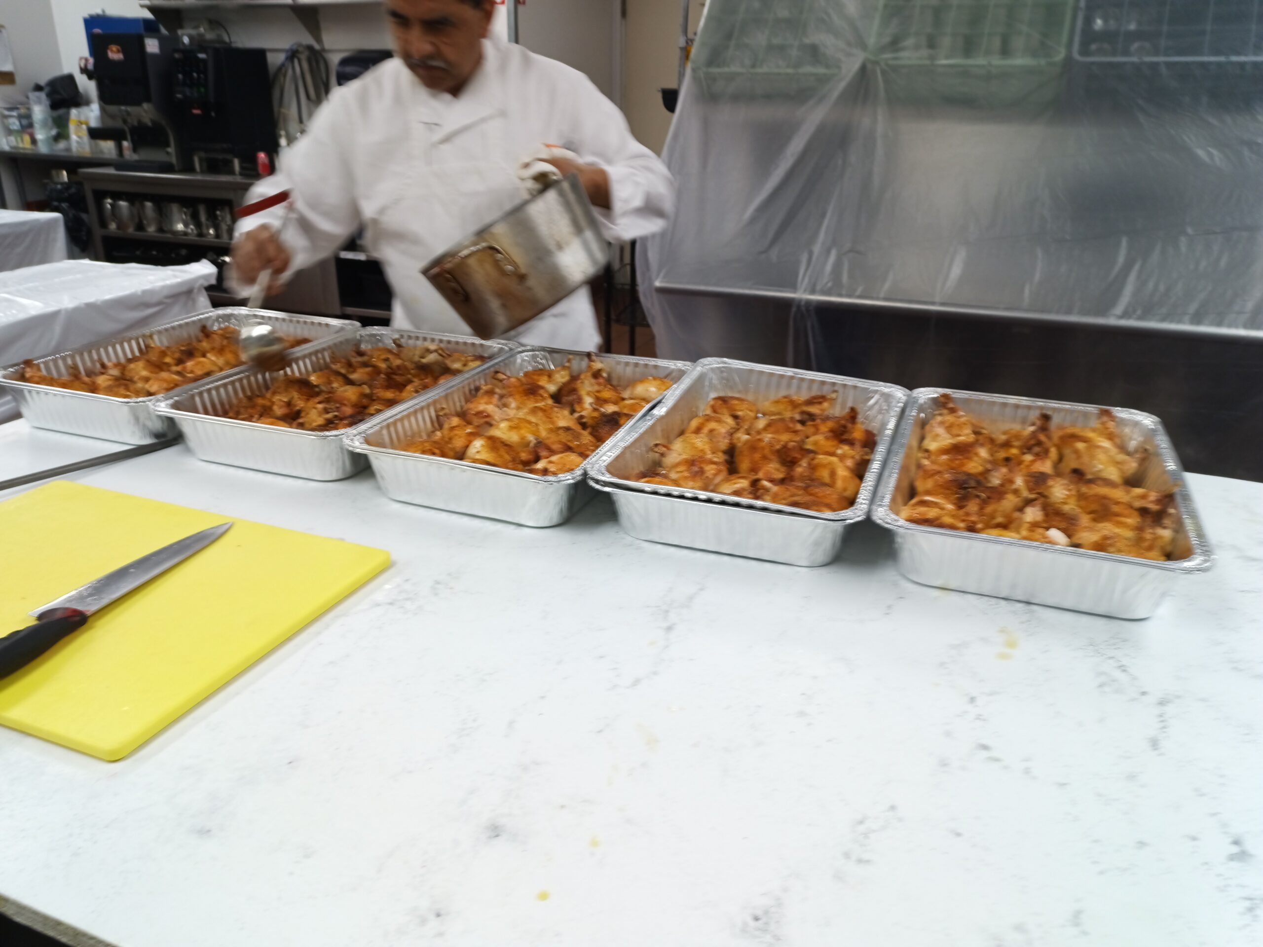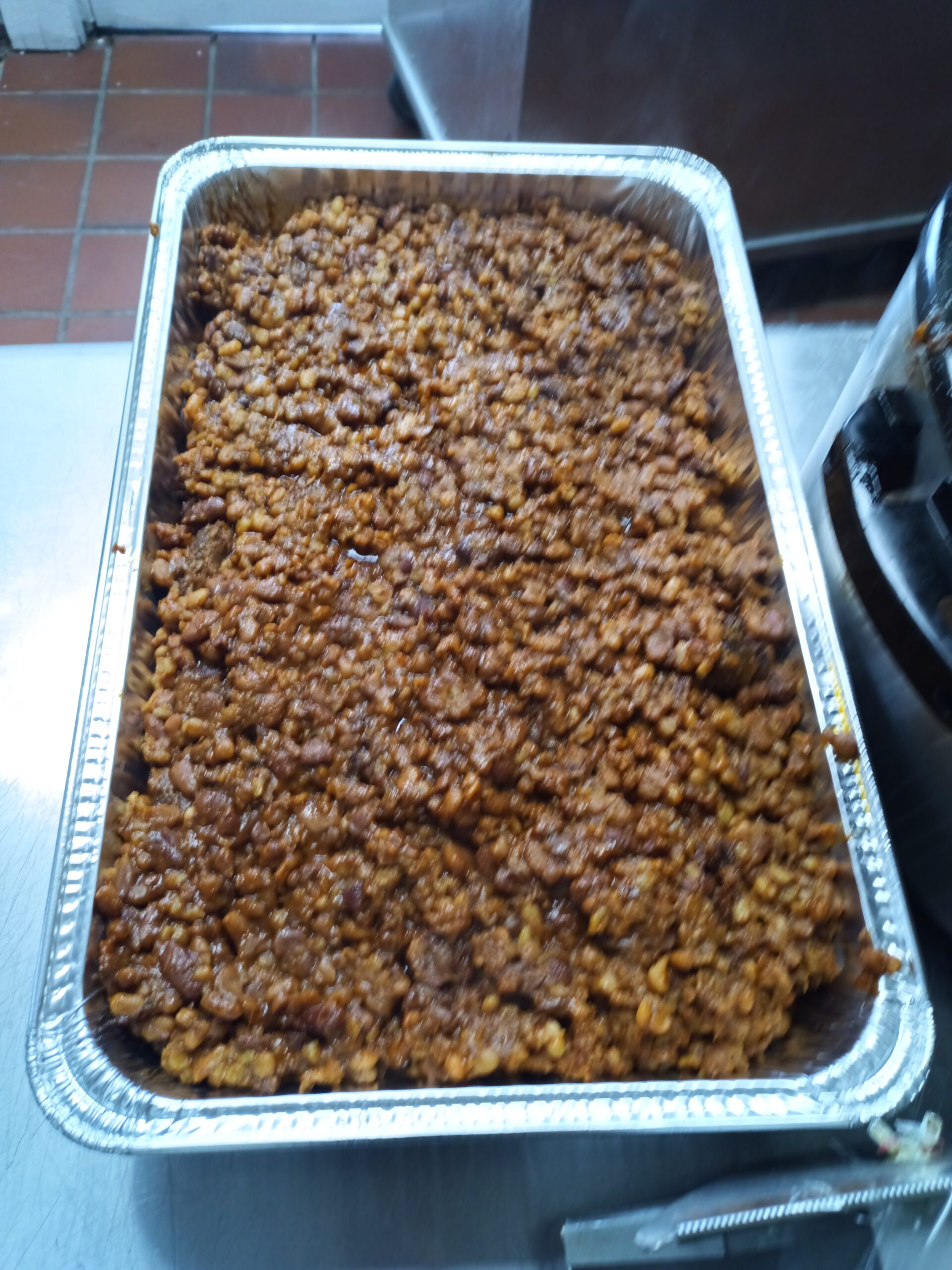 Cake, Fruits, Potato Kugel, Sesame Chicken, Chicken Lomain, Hot Pastrami, Shlishkas, Mini Potato Puffs.